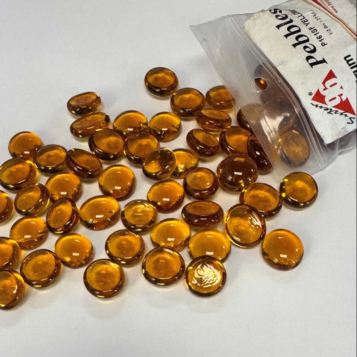 Round top, flat bottomed System 96® glass nuggets measure about 1/2 inch in diameter. Each package contains 1/2 lb (8 oz) of same-color Pebbles (about 100 pieces).